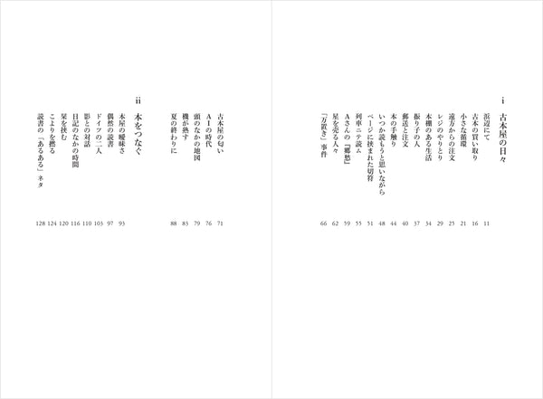 活字離れといわれる昨今だが、新刊書店や図書館とはまた別の角度から、本と読者をつなぐ役割を担っている。日々の仕事のなかで多くの書物や人と接し、見て、考えてきた店主が、本の豊かな魅力、読書の醍醐味、活字文化のこれからを綴ったエッセイ集。